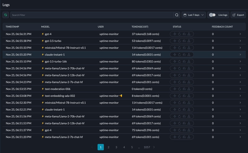 • Track usage per user/team with the help of virtual keys