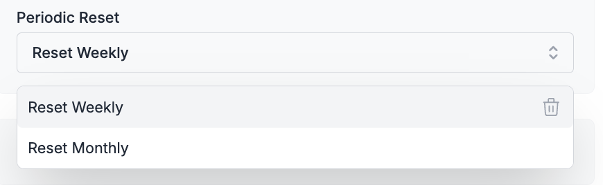 • Weekly resets occur at the beginning of each week (Sunday at 12 AM UTC)